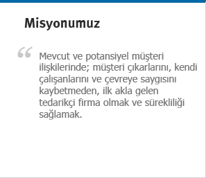 > Başta üst yönetim olmak üzere belirlemiş olduğumuz şartlara uygun olarak çalışacağımızı ve kaliteyi sürekli iyileştirmeyi taahhüt ediyoruz. |
